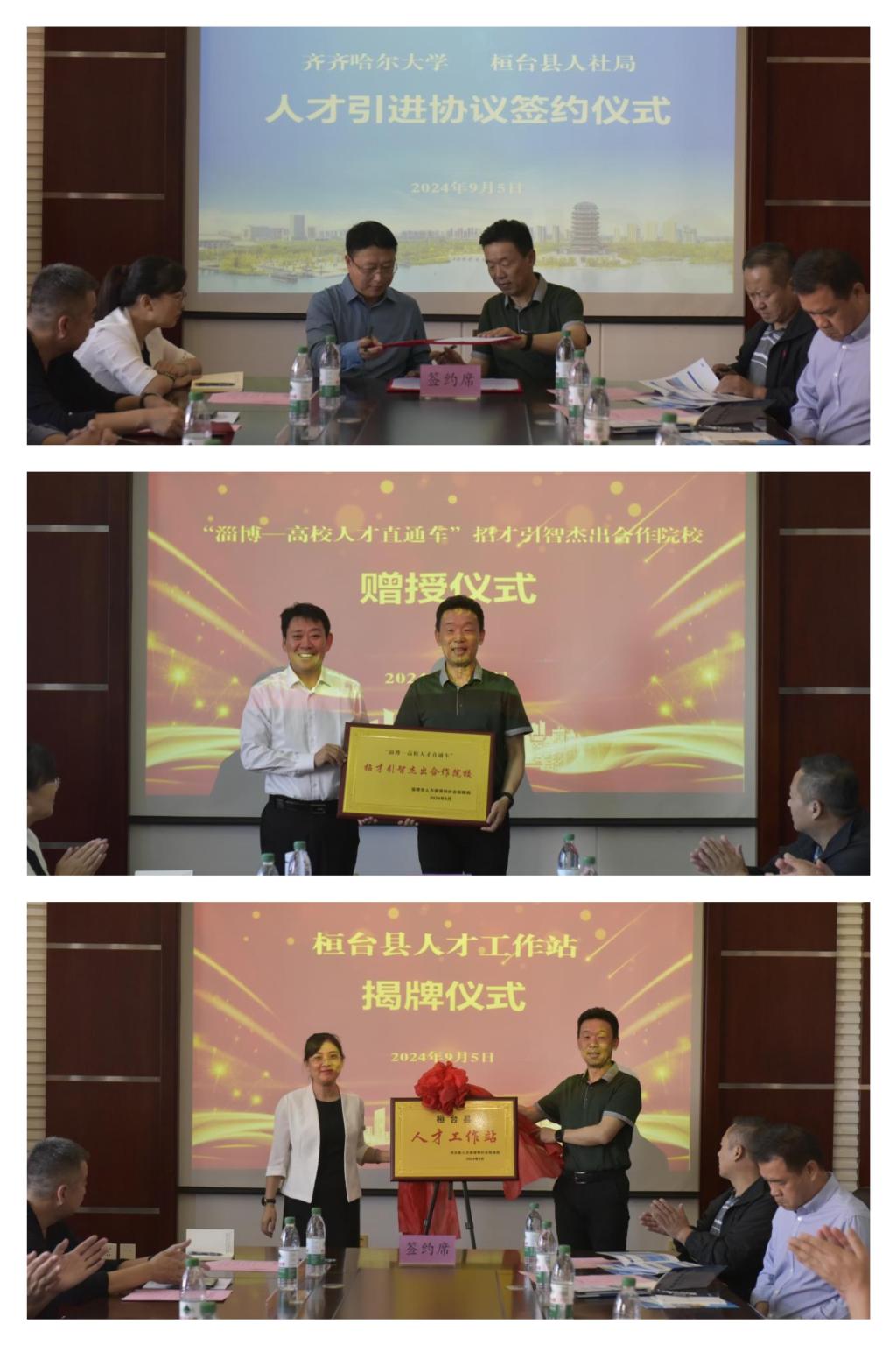 學(xué)校分別與淄博市和桓臺(tái)縣進(jìn)行校地合作簽約及授牌儀式。