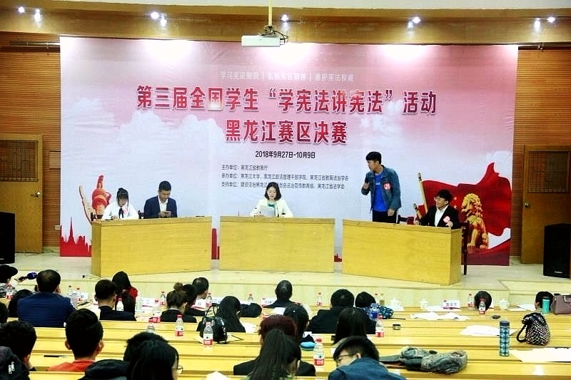 本次演講決賽的主題是“學(xué)習(xí)憲法知識、弘揚(yáng)憲法精神、維護(hù)憲法權(quán)威”。在省內(nèi)各高校校內(nèi)選拔的基礎(chǔ)上,來自黑龍江省20所高校的師生最終進(jìn)入了總決賽。比賽共分三輪進(jìn)行,第一輪為主題演講,第二輪為命題演講,第三輪為2對2辯論。每輪比賽結(jié)束評委為選手分別打分,憑最終積分決定選手的最終排名。