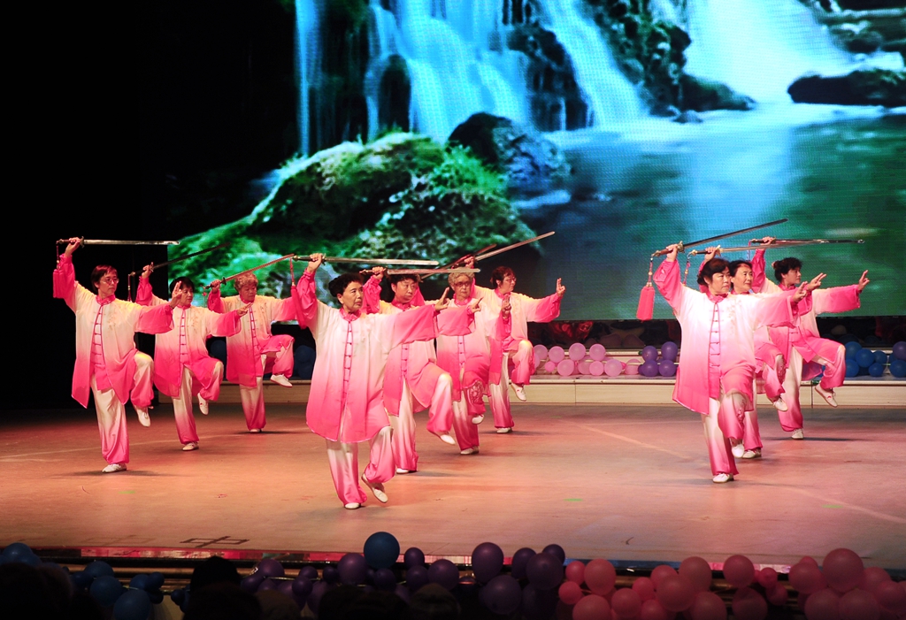 在開幕式上,我校離退休老同志表演了太極拳、太極劍、太極扇、全民健身操、舞蹈《大中國(guó)》等精彩的文藝節(jié)目,離退休工作處副處長(zhǎng)杜金彪、田立玲分別帶來了歌曲《最美的歌兒唱給媽媽》《今天是你的生日—中國(guó)》,贏得了廣大老同志們的陣陣掌聲,開幕式最后在與會(huì)領(lǐng)導(dǎo)和全體演職人員合唱的歌曲《我和我的祖國(guó)》中落下帷幕。