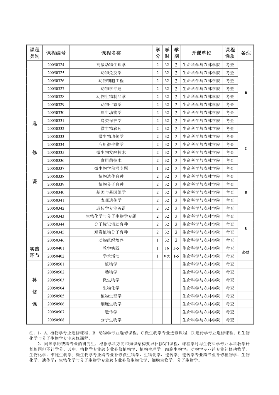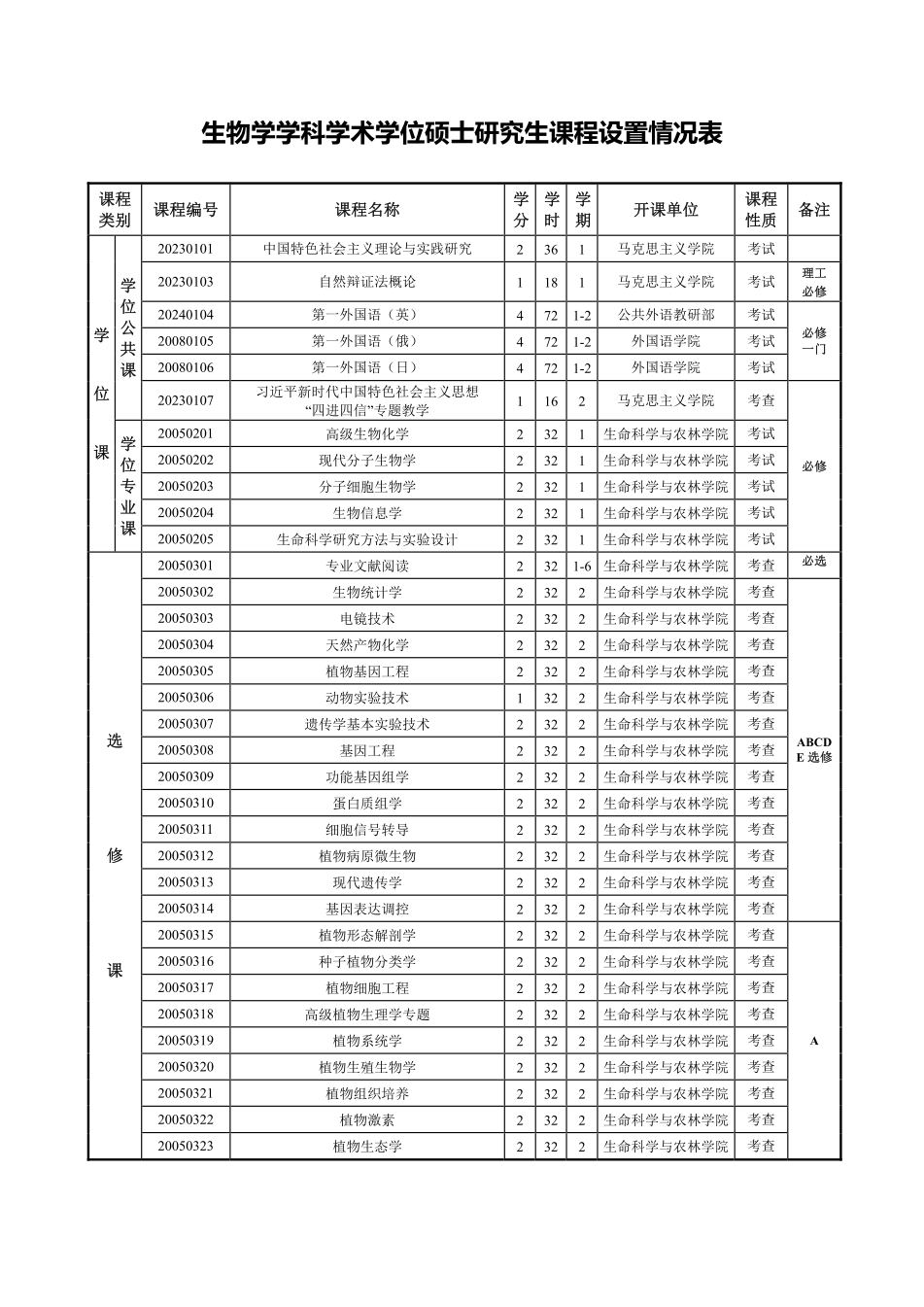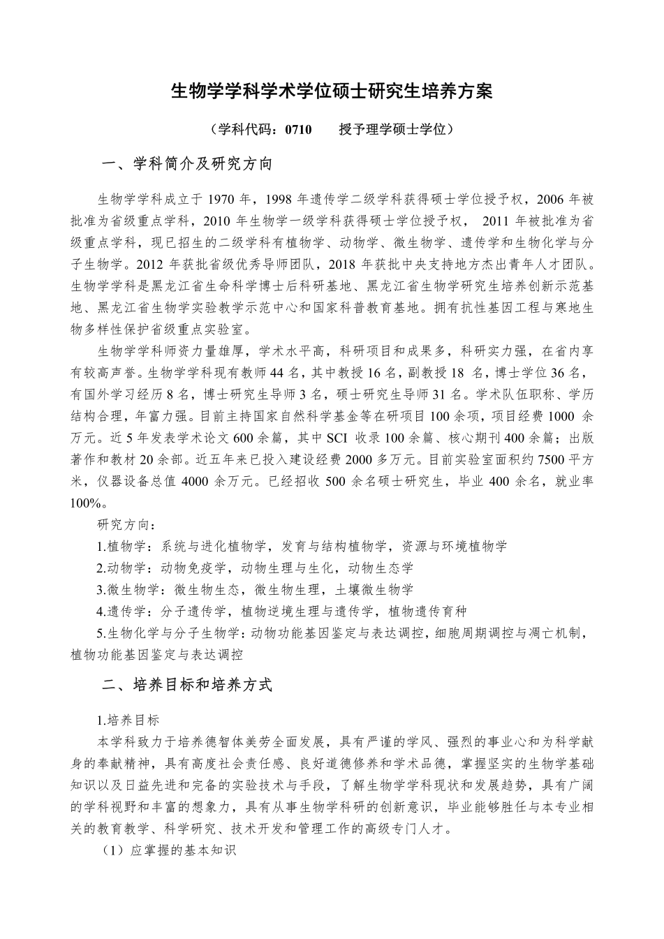 生物學學科攻讀碩士學位研究生培養(yǎng)方案